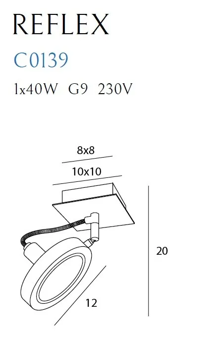 Moc/Power: 1 x 40W G9 230V _x000D_ W: 12 cm, D: 10 cm, H: 20 cm_x000D_ Wykończenie/Detail finishing: białe/white, chromowe/chrome_x000D_ Materiał/Material: metal/metal_x000D_ Nie zawiera żarówek/bulbs excluded