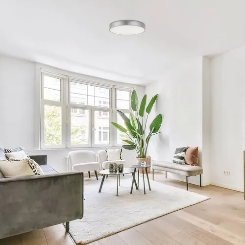 A csillogó effekttel ellátott, kerek Octav mennyezeti lámpa szinte bármely modern nappali, hálószoba vagy dolgozószobába berendezésének praktikus darabja lehet. Az ezüstszínű, fém lámpatestet fehér műanyagbúra egészíti ki. Az Octav beépített LED fényforrással rendelkezik, amelynek a teljesítménye 26 W, fényereje 1660 lumen, élettartama pedig igazán rendkívüli: 50 000 óra! A mennyezeti lámpa színhőmérséklete 4000 K, azaz természetes fehér fénnyel világít, ami modern, tiszta hatást kelt a szobában. Az Octav mennyezeti lámpa átmérője 400 mm, mennyezettől mért távolsága 50 mm. Erre a modellre 5 év garanciát vállalunk.