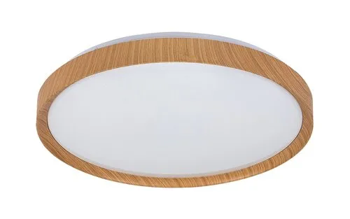 A skandináv stílusú Sherwood mennyezeti lámpa egyszerű dizájnja extra funkciók egész tárházát rejti. Kitűnő választás lehet a nappaliba, az étkezőbe vagy a hálószobába. A bükkszínű, fém lámpatest csillogó effekttel ellátott, fehér műanyagbúrával egészül ki. A lámpa beépített LED fényforrása 50 W-os teljesítménnyel, 4000 lumenes fényerővel és 25 000 órás élettartammal rendelkezik. A fényforrás színhőmérséklete 3000–6500 K között tetszés szerint állítható távirányító vagy fali kapcsoló segítségével, azaz beállíthatunk meleg, természetes vagy hideg fehér fényt. Ezenkívül a lámpa távirányítóval dimmelhető, azaz fényereje is változtatható. További extrák az időzítő és az éjszakai fény funkció, amelyek ugyancsak távirányítóval állíthatók. A Sherwood átmérője 490 mm, mennyezettől mért távolsága 70 mm. Erre a sokoldalú lámpára 5 év garanciát vállalunk.