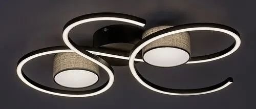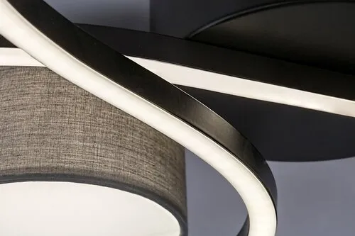 A Shiena mennyezeti lámpát azoknak ajánljuk, akik különleges formatervezésű, szemet gyönyörködtető modellt keresnek modern nappalijukba vagy hálószobájukba. A Shiena ugyanakkor nemcsak szép, de a szoba hatékony központi fényforrása is lehet. A fémből készült matt fekete lámpa kisméretű kerek dísztalp segítségével rögzíthető a mennyezetre, ehhez kapcsolódnak a lámpa világító részei: két henger alakú, fehér textilbúval ellátott lámpafej, és egy fehér műanyagbúrával kiegészülő, kecsesen kanyargó lámpaelem. A mennyezeti lámpa a G energiaosztályba tartozó beépített LED fényforrással rendelkezik, amelynek a teljesítménye 38 W, fényereje búrával 1880 lumen, búra nélkül 3300 lumen, élettartama pedig 30 000 óra. A 4000 K színhőmérsékletű fényforrás természetes fehér fénnyel világít, amely modern, tiszta hatást kelt. A mennyezeti lámpa méretei a következők: szélessége 600 mm, magassága 540 mm, beépítési átmérője 100 mm, mennyezettől mért távolsága pedig 140 mm.