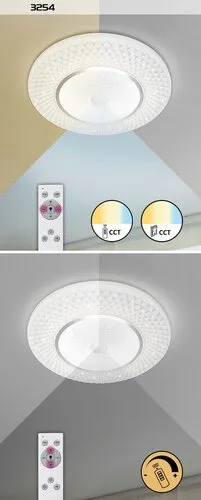 A modern stílusú, kerek Tornado mennyezeti lámpa egyszerű formatervezése számos extra funkcióval párosul. Remek választás lehet a nappaliba, a hálószobába vagy a dolgozószobába. A krómszínű, fém lámpatestet csillogó effekttel ellátott fehér műanyagbúra egészíti ki. A Tornado beépített LED fényforrással rendelkezik, amelynek a teljesítménye 72 W, fényereje 5470 lumen, élettartama pedig igazán rendkívüli: 50 000 óra! A mennyezeti lámpa színhőmérséklete 3000–6500 K között tetszés szerint állítható, azaz választhatunk meleg, természetes vagy hideg fehér fényt. A Tornado dimmelhető, azaz fényereje is változtatható. További extra funkciók az időzítő, a memória és az éjszakai funkció. Az okos lámpa minden extra funkciója távirányítóval szabályozható, ezenkívül a színhőmérséklet fali kapcsolóval is állítható. A mennyezeti lámpa átmérője 480 mm, mennyezettől mért távolsága 70 mm. Erre a modellre 5 év garanciát vállalunk.