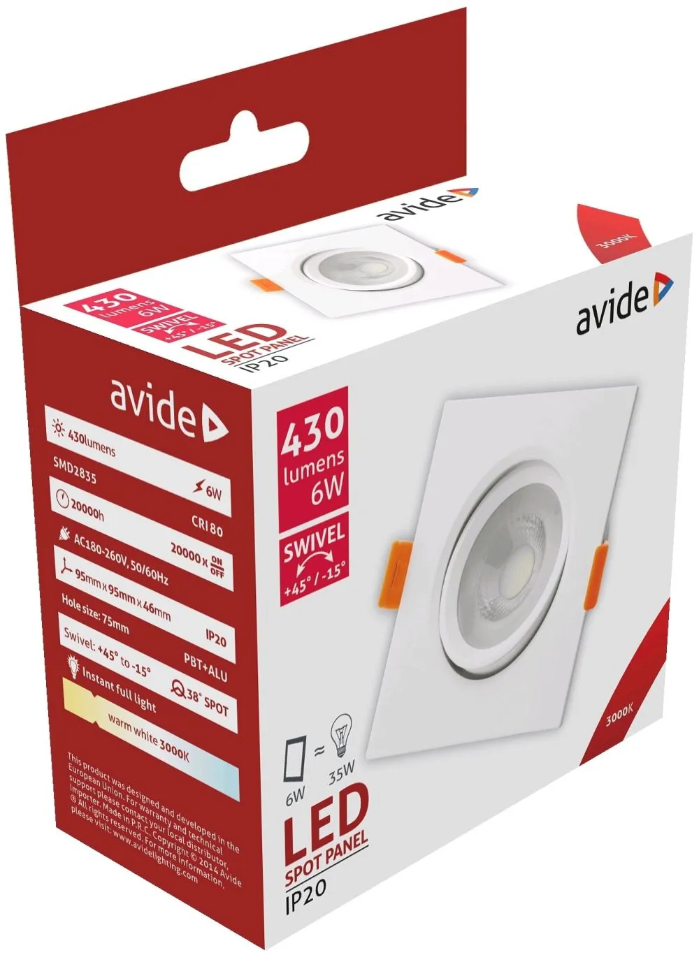 Avide LED Beépíthető Spot 38° Négyzetes 6W WW 3000K