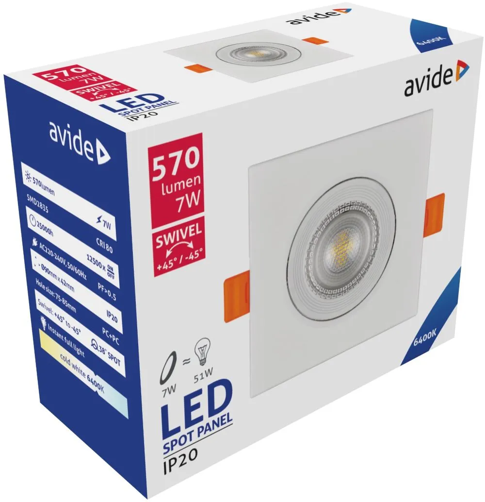 Avide LED Beépíthető Spot 38° Négyzetes 7W CW 6400K