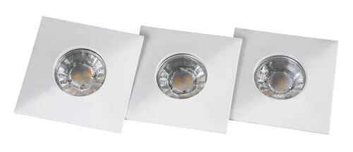 Modern megjelenésű ráépíthető és beépíthető lámpa energiatakarékos LED izzóval. 7,8 x 7,8 cm széles, fehér színű fém lámpatest és áttetsző üveg lámpabúra. A falba beépített lámpatest IP20-as, a mennyezetből kilátszó rész IP44-es védettségű. A beépített LED izzó teljesítménye 4W, amelyhez 350 lumen fényerő társul. A spotlámpa színhőmérséklete melegfehér (3000 Kelvin). 5 év garanciával! Kiszerelés: 3 db/csomag