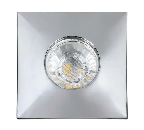 Modern megjelenésű ráépíthető és beépíthető lámpa energiatakarékos LED izzóval. 7,8 cm x 7,8 cm széles, króm színű fém lámpatest és áttetsző üveg lámpabúra. A falba beépített lámpatest IP20-as, a mennyezetből kilátszó rész IP44-es védettségű. A beépített LED izzó teljesítménye 4W, amelyhez 350 lumen fényerő társul. A spotlámpa színhőmérséklete melegfehér (3000 Kelvin). 5 év garanciával! Kiszerelés: 3 db/csomag