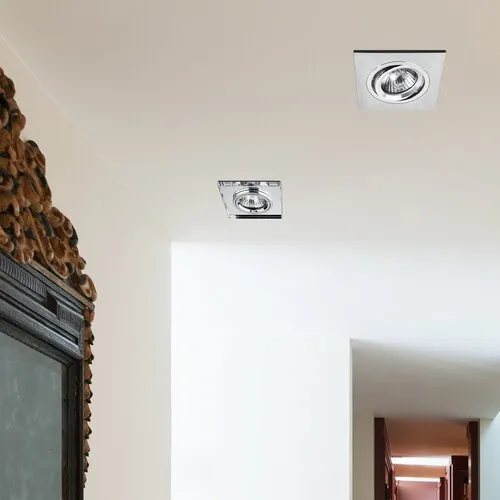 Gipszkarton álmennyezetbe és bútorlapba beépíthető, króm színű foglalattal, súrolt alumínium rámával készített lámpatest. A spotlámpa billenthető, a fény iránya állítható. GU5,3-as foglaltú maximum 50W teljesítményű halogén vagy LED izzóval használható. LED fényforrással a lámpatest polisztirol díszlécbe is beépíthető. A beépítési felület kialakításához szükséges méretek megtalálhatók a termék csomagolásában elhelyezett rajzos használati útmutatóban.