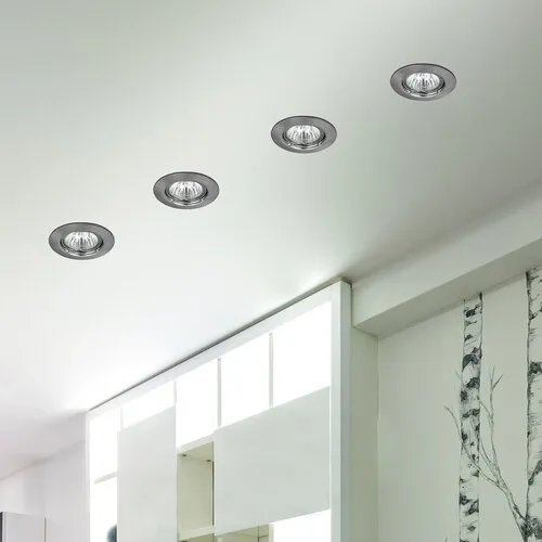 Gipszkarton álmennyezetbe és bútorlapba beépíthető, klasszikus megjelenésű spot lámpatest, szatin króm színben. A fix helyzetű fényforrás egyállású megvilágítást biztosít. A GU5.3-as foglalat kialakítása lehetővé teszi max. 50W teljesítményű halogén vagy LED fényforrás alkalmazását. LED fényforrással a spot lámpatest polisztirol díszlécbe is beépíthető. A beépítési felület kialakításához szükséges méretek megtalálhatóak a termék csomagolásában elhelyezett rajzos használati útmutatóban.