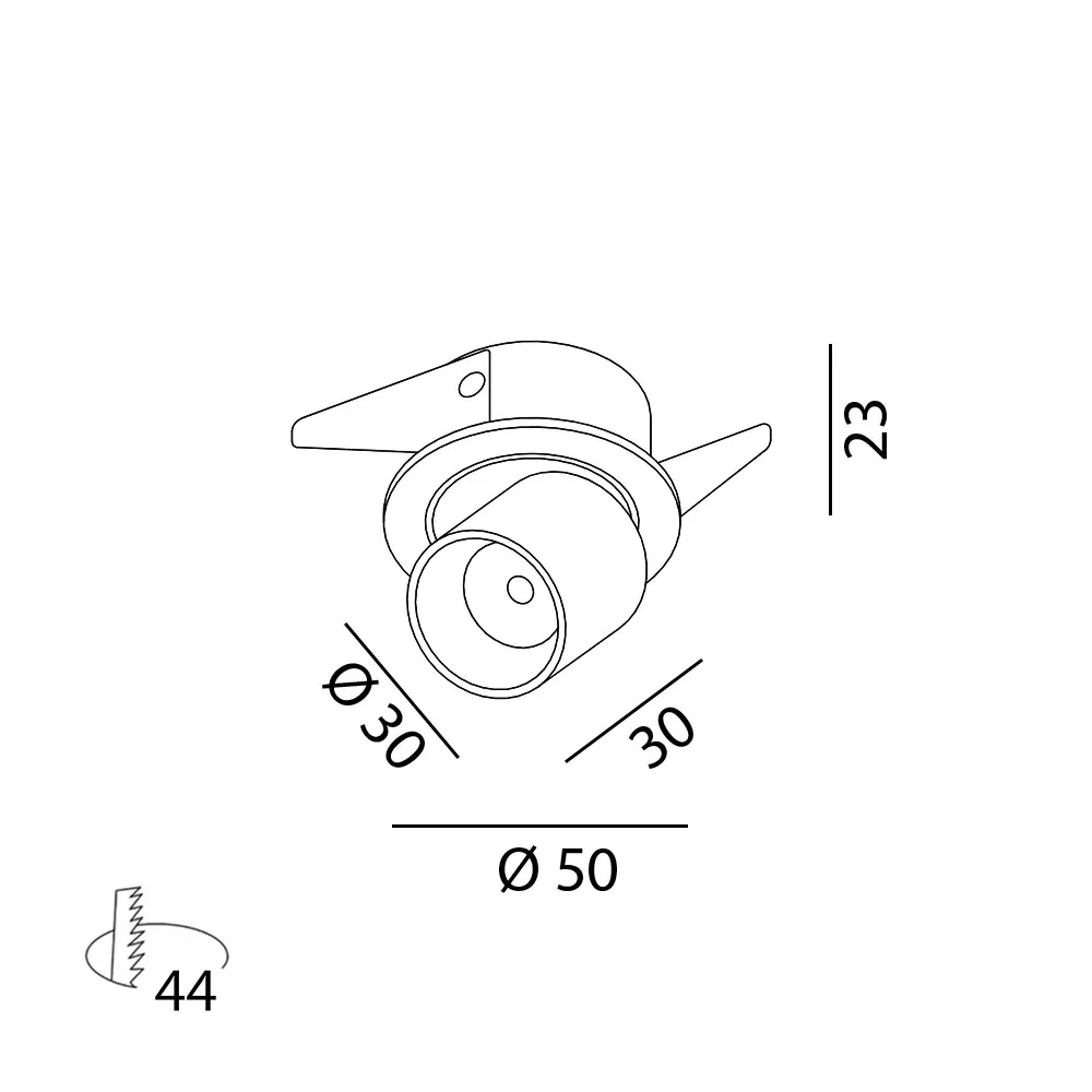 Ceiling recessed luminaire TUB S OUT, D30mm, H30mm, 4 W LED, 350mA 340Lm, 3000K, 50fok, CRI>90, IP 20, black color - LTX-01.0303.4.930.BK