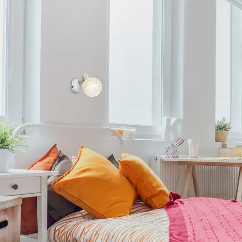 A skandináv stílusban készült Hazel spotlámpa játékos megjelenésével üde színfoltja lehet otthonunknak. A fémből készült, matt fehér lámpatestet gömbölyded, világos színű, zsinór papírbúra egészíti ki, így a Hazel remekül mutat pasztell vagy élénkebb színek alkotta enteriőr részeként egyaránt. Elhelyezhetjük a nappaliban vagy a hálószobában, esetleg az előszoba falán. A Hazel spot lámpa egy darab, legfeljebb 15 W teljesítményű, csak energiatakarékos fényforrással használható, a foglalat típusa E14. Ha kellemes, meghitt hangulatot szeretnénk, válasszunk hozzá meleg fehér színű fényforrást. A kapcsolóval szerelt lámpa méretei a következők: szélessége 100 mm, magassága 140 mm, faltól való távolsága 160 mm. A Hazel spot lámpát fényforrás nélkül szállítjuk.