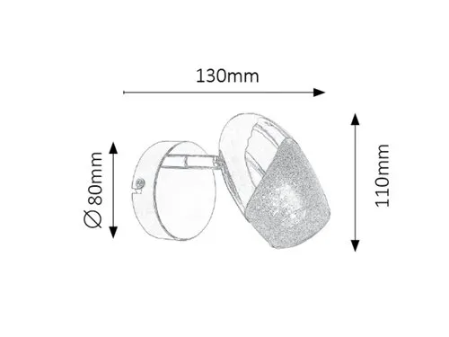 Modern megjelenésű fali spotlámpa energiatakarékos LED izzóval. 13 cm kinyúlású, 11 cm magas, króm színű fém lámpatest és pozícionálható, üveg és fém kombinációjú lámpabúra, IP20-as védettséggel. A lámpatestben elhelyezett LED izzó A+ energiaosztály besorolású és 4W teljesítmény mellett 400 lumen fényerőt, valamint 4000 Kelvines, természetes fehér színű fényt biztosít. izzócsere estén a lámpatest E-14-es foglalatkialakítású, max. 40W teljesítményű izzóval használható.