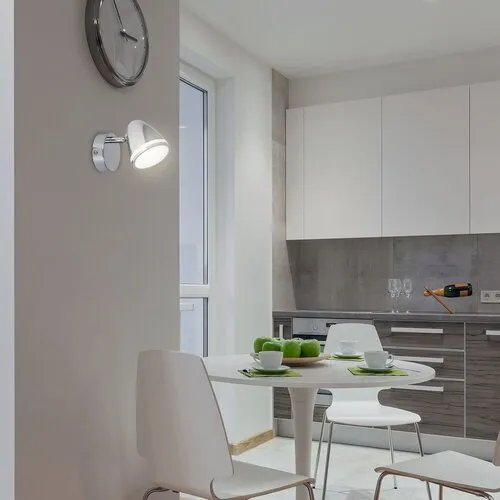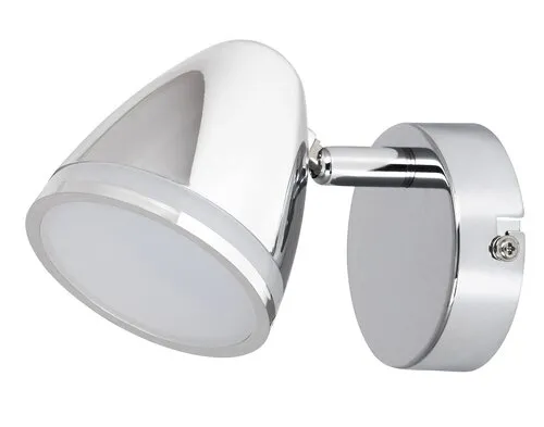 Modern megjelenésű fali spotlámpa beépített energiatakarékos LED izzóval. Króm színű, fém és műanyag kombinációjú lámpatest 13 cm magas, pozícionálható lámpabúrával, IP20-as védettséggel. A beépített LED izzó A+ energiaosztály besorolású és 4W teljesítmény mellett 360 lumen fényerőt, valamint 4000 Kelvines, természetes fehér színű fényt biztosít. A lámpatestbe beépített izzó nem cserélhető. 5 év garanciával!