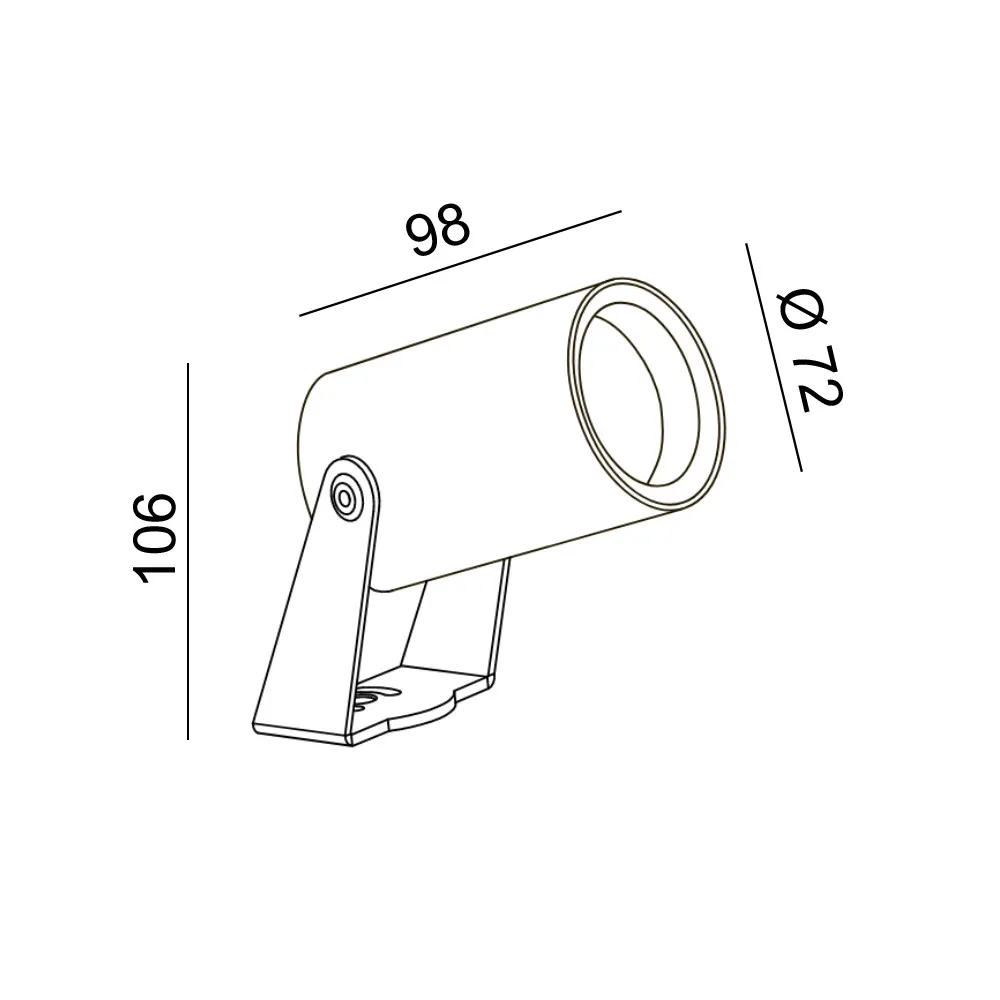 Spotlight luminaire VISOR72. L98mm, D72mm, H106mm, 600mA, 10.5W LED, 1423 Lm, 3000K, 15fok, CRI>90, DC48V (without driver), IP 65, dark grey color - LTX-08.3012.11.930.GR.15