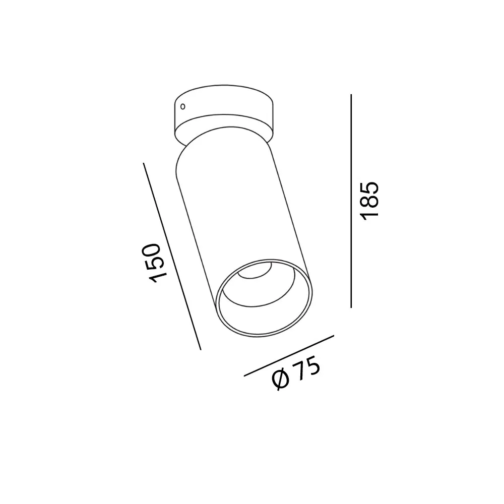 Surface mounted luminaire TUB L SA 150, D75, H185mm, CREE LED 13W, 500mA, 1023lm, 4000K, 50fok, CRI>90, IP 20, black color - LTX-02.0715.13.940.BK