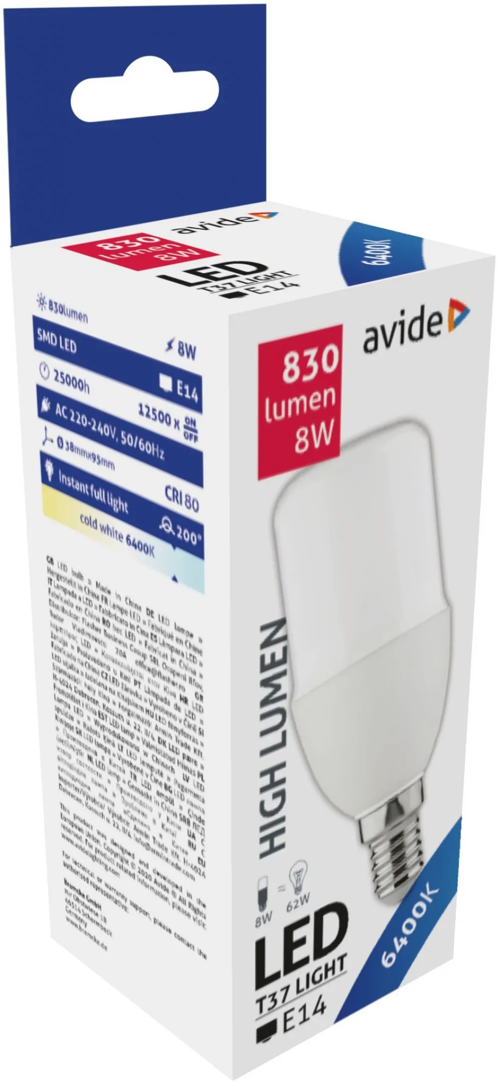 Avide LED Bright Stick izzó T37 8W E14 CW 6400K