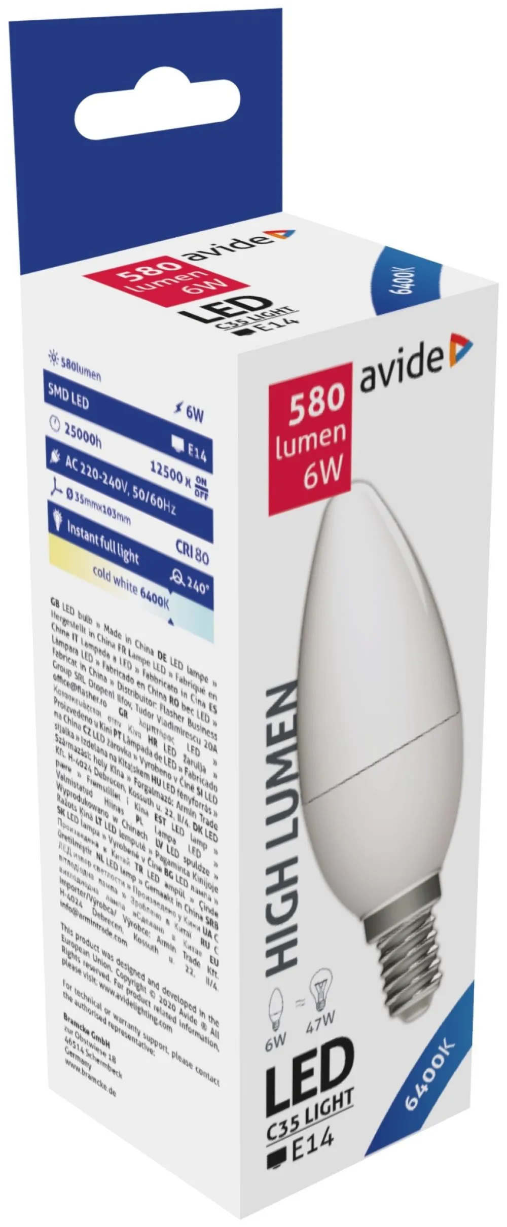 Avide LED Candle 6W E14 CW 6400K