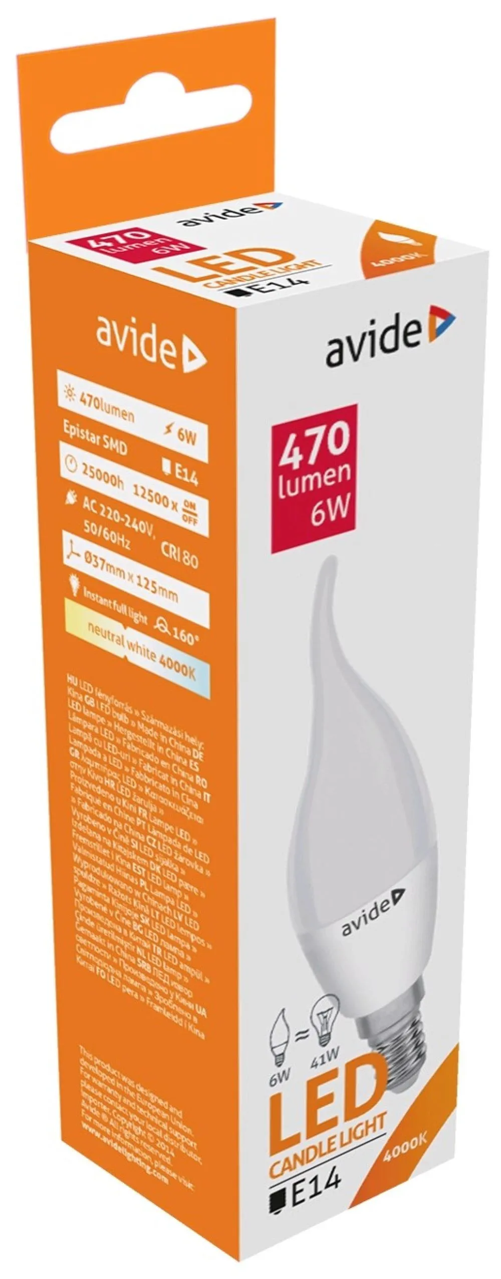 Avide LED Candle Flame 6W E14 NW 4000K