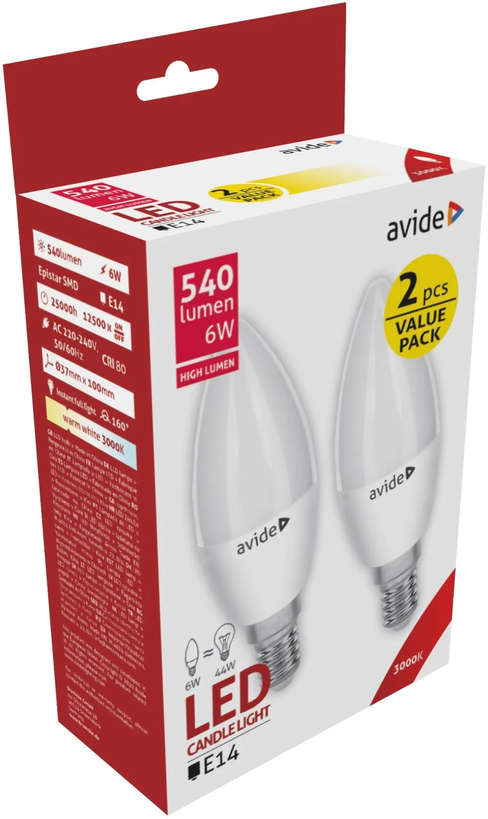 Avide LED Candle Twin Pack 6W E14 WW 3000K