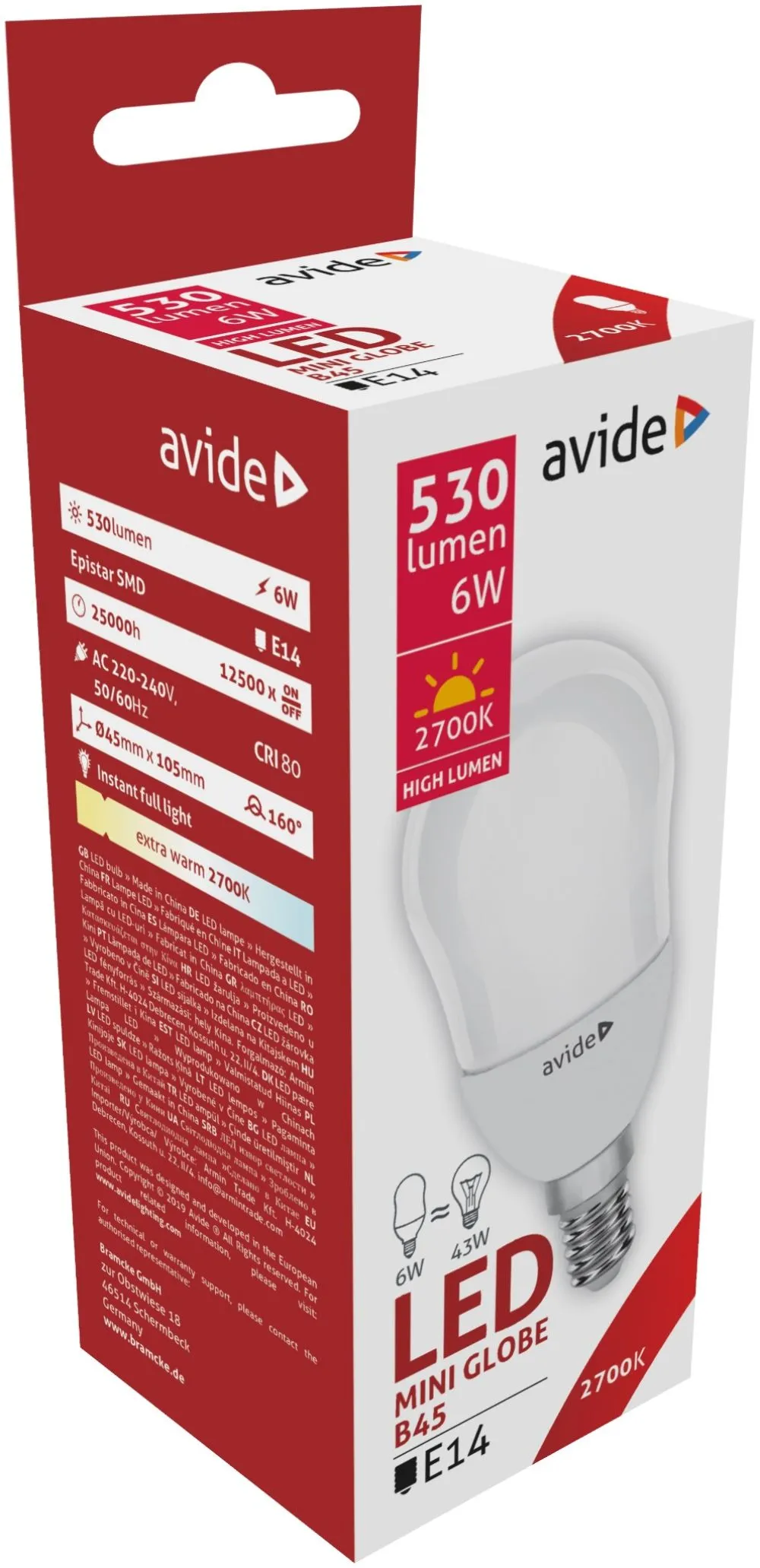 Avide LED Globe Mini B45 6W E14 EW 2700K