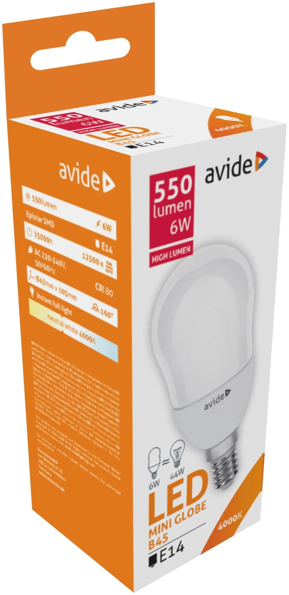 Avide LED Globe Mini B45 6W E14 NW 4000K