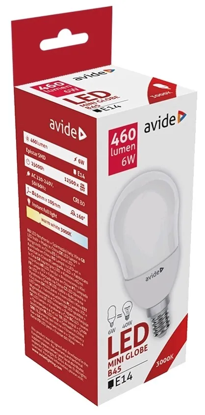 Avide LED Globe Mini B45 6W E14 WW 3000K