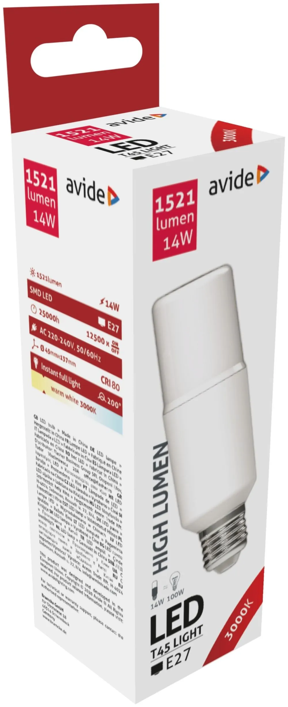 Avide LED Bright Stick izzó T45 14W E27 WW 3000K