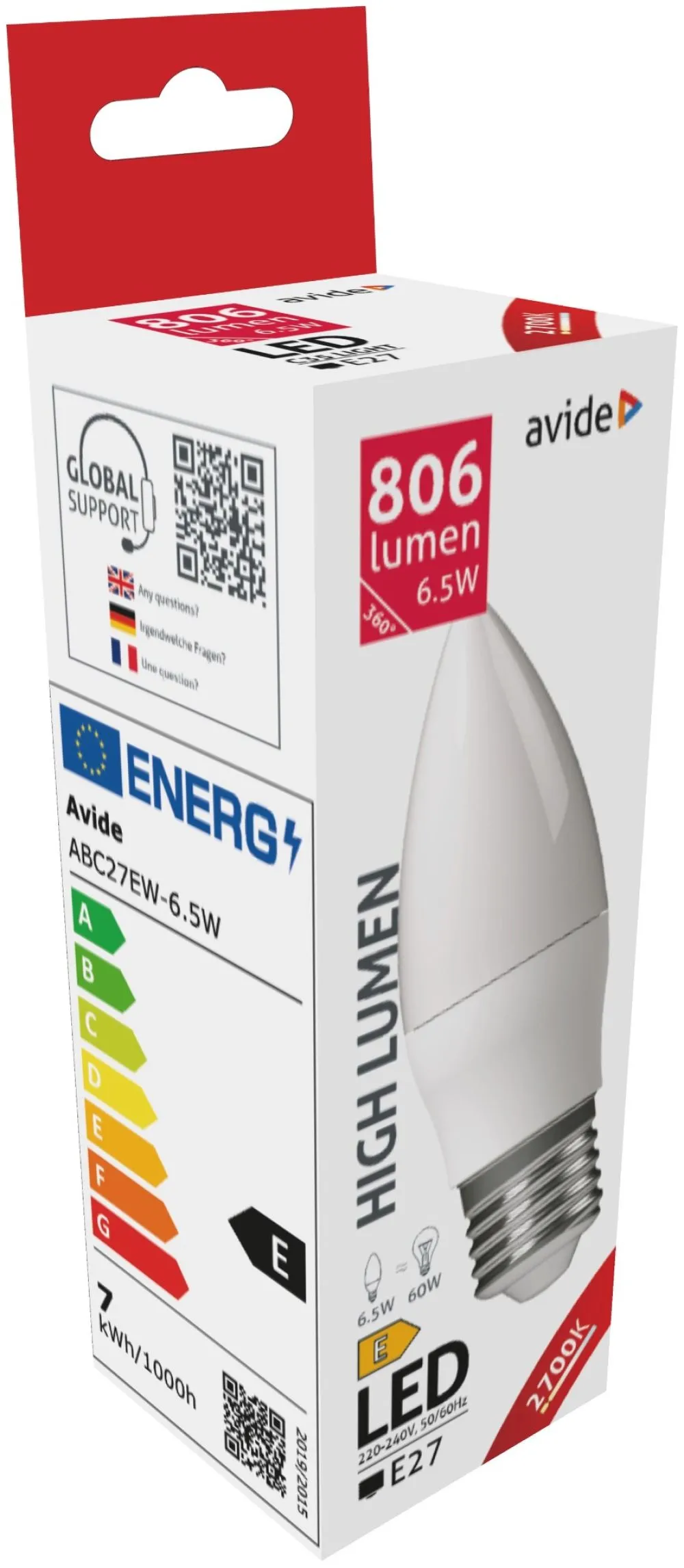 Avide LED Candle 6.5W E27 EW 2700K