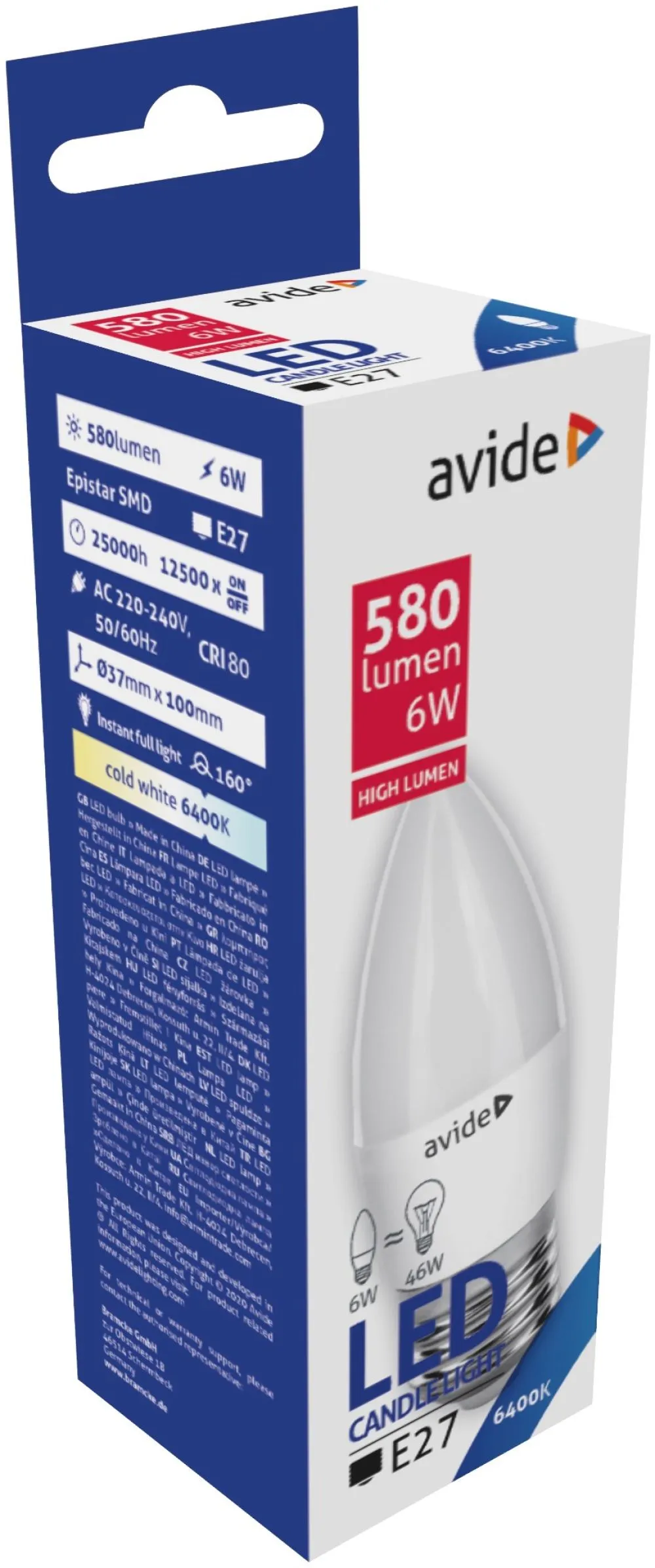 Avide LED Candle 6W E27 CW 6400K