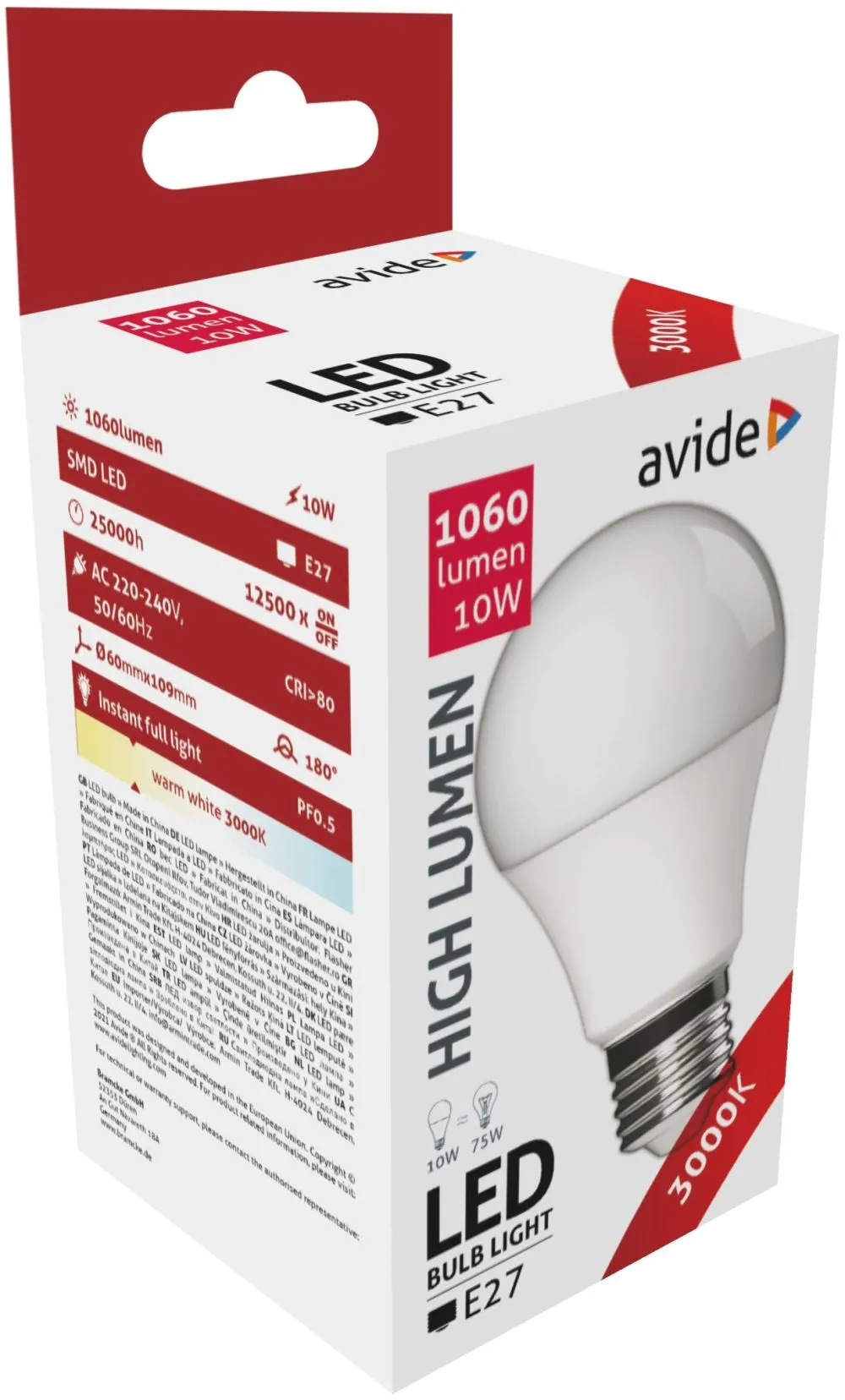 Avide LED Globe A60 10W E27 WW 3000K