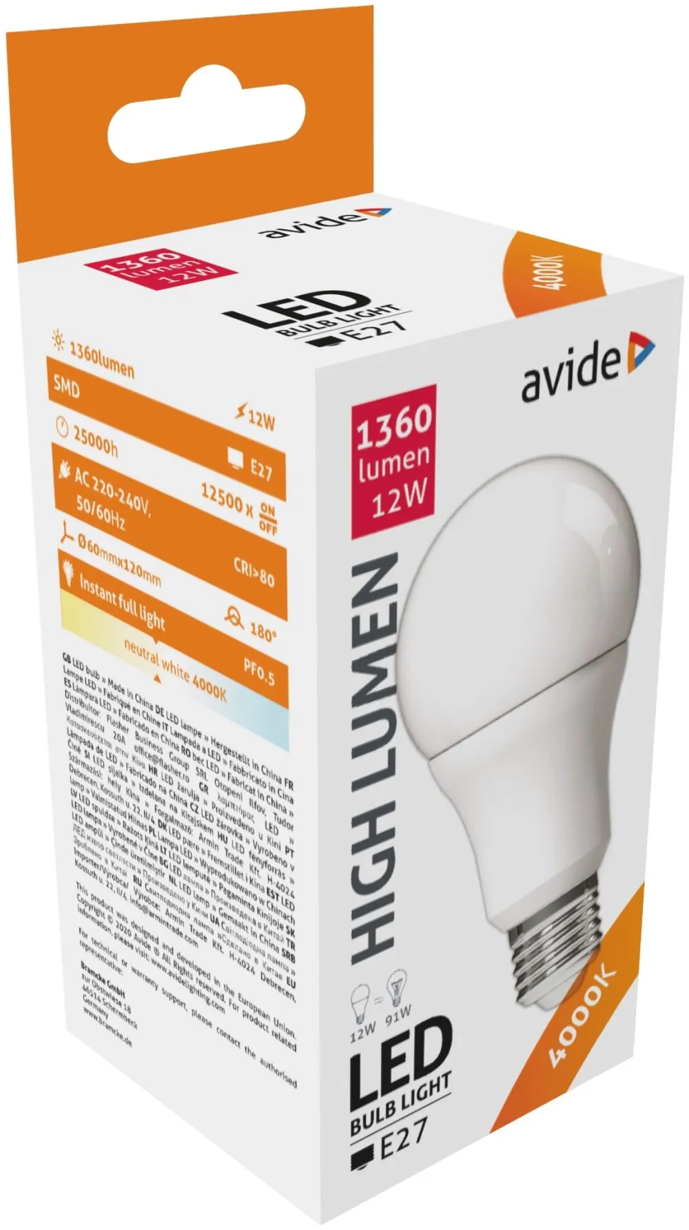 Avide LED Globe A60 12W E27 NW 4000K
