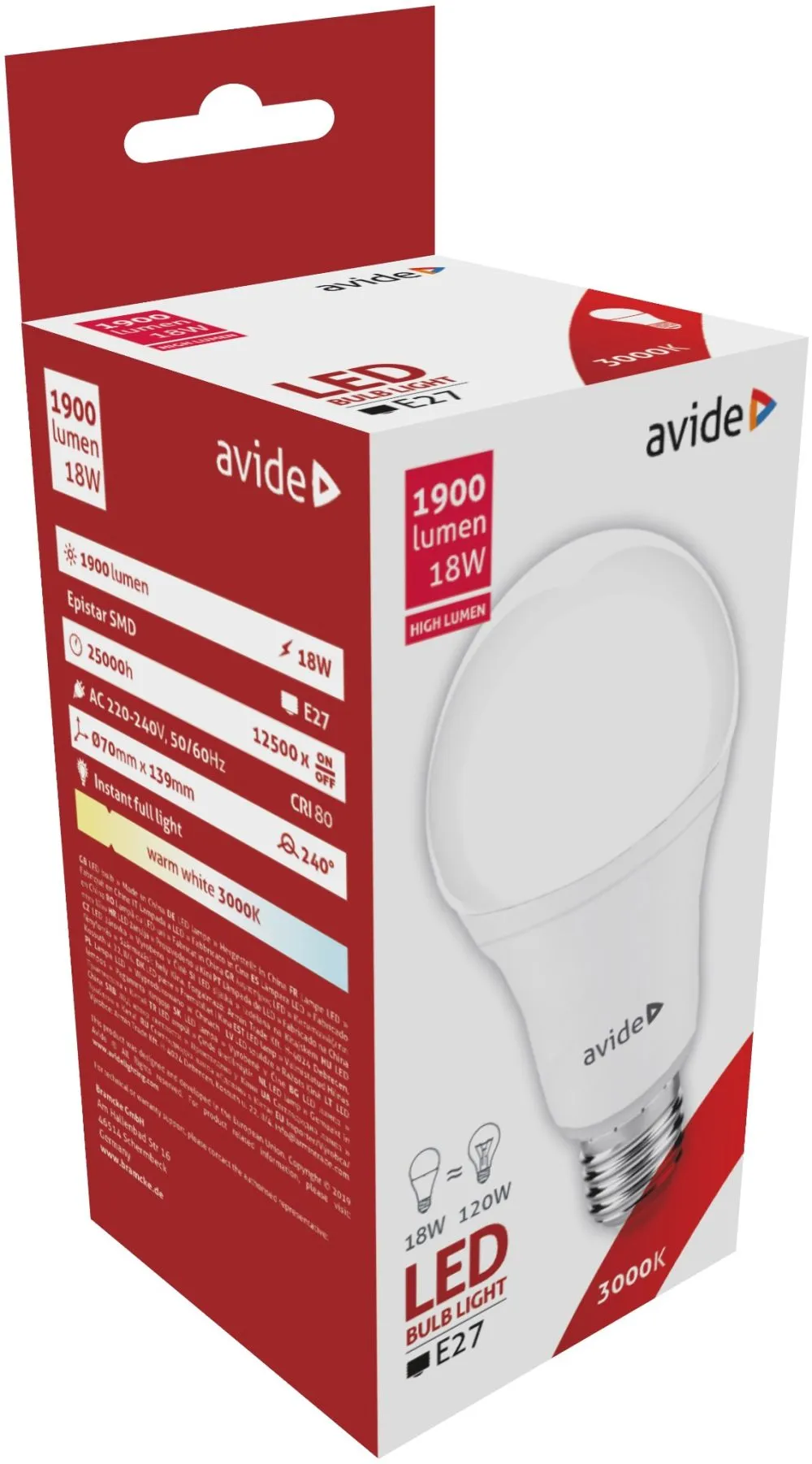 Avide LED Globe A70 18W E27 240° WW 3000K
