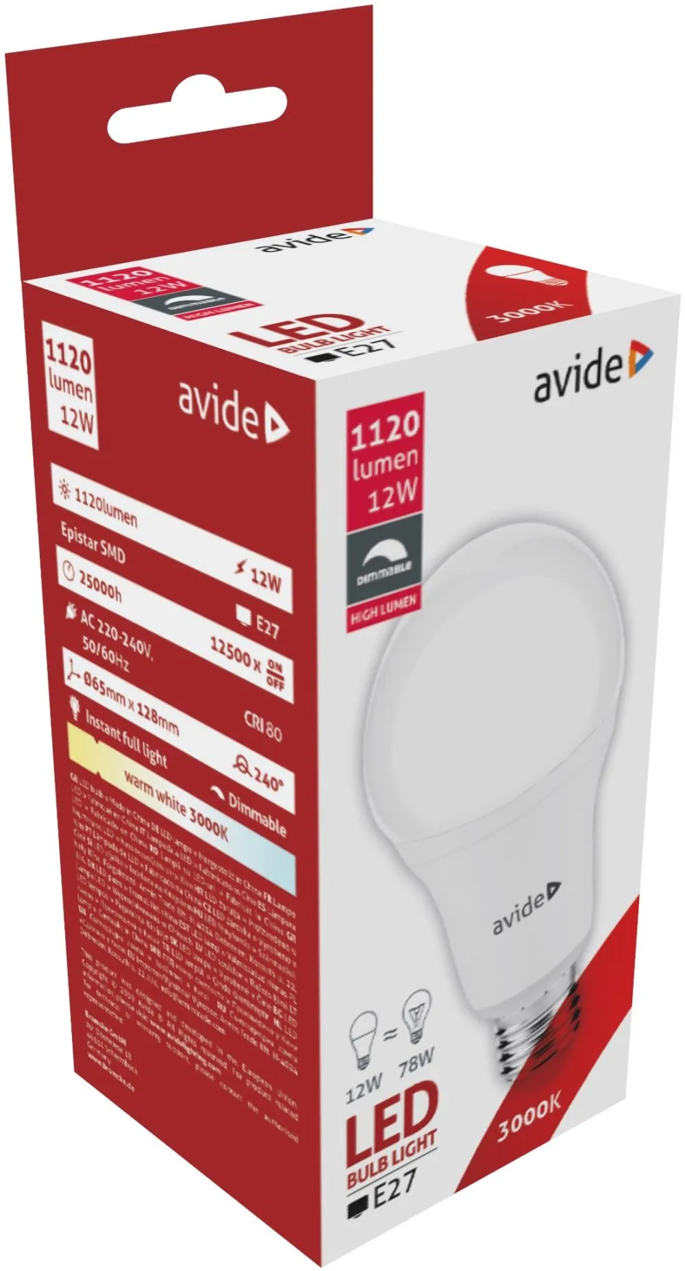 Avide LED Globe Fényerőszabályzós A60 12W E27 240° WW 3000K
