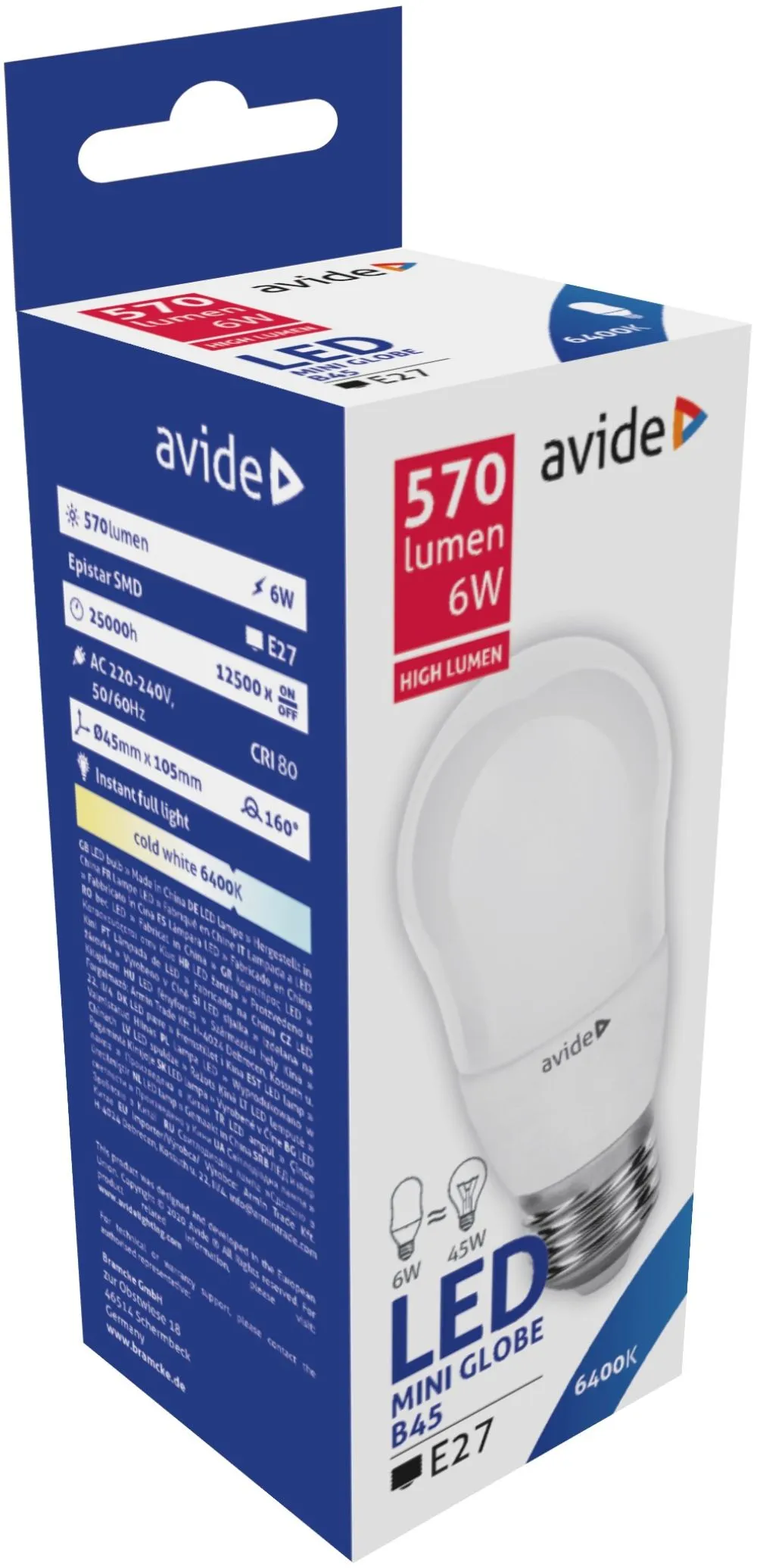 Avide LED Globe Mini B45 6W E27 CW 6400K