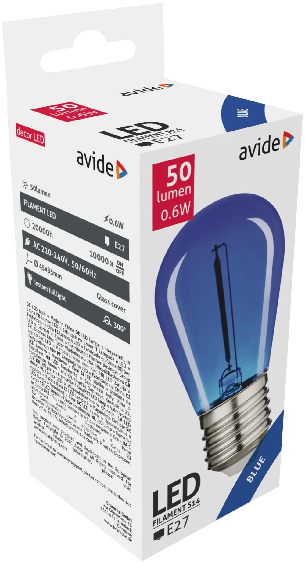 Avide Dekor LED Filament fényforrás 0.6W E27 Kék