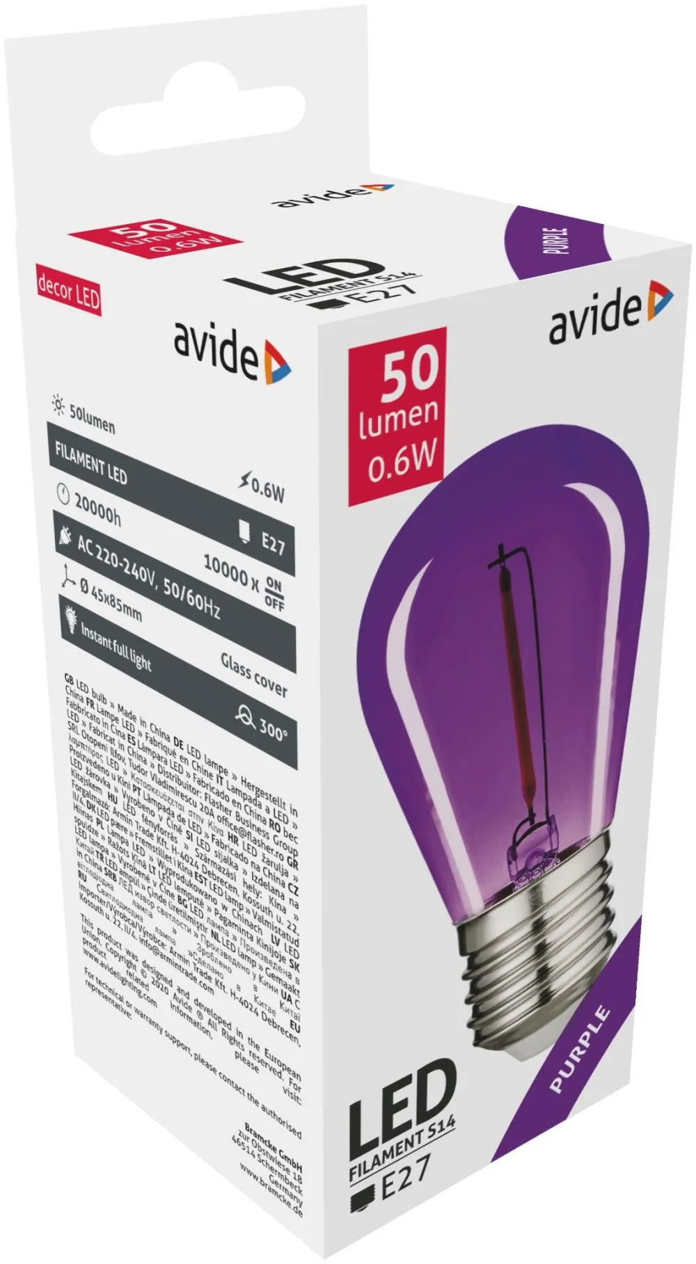Avide Dekor LED Filament fényforrás 0.6W E27 Lila