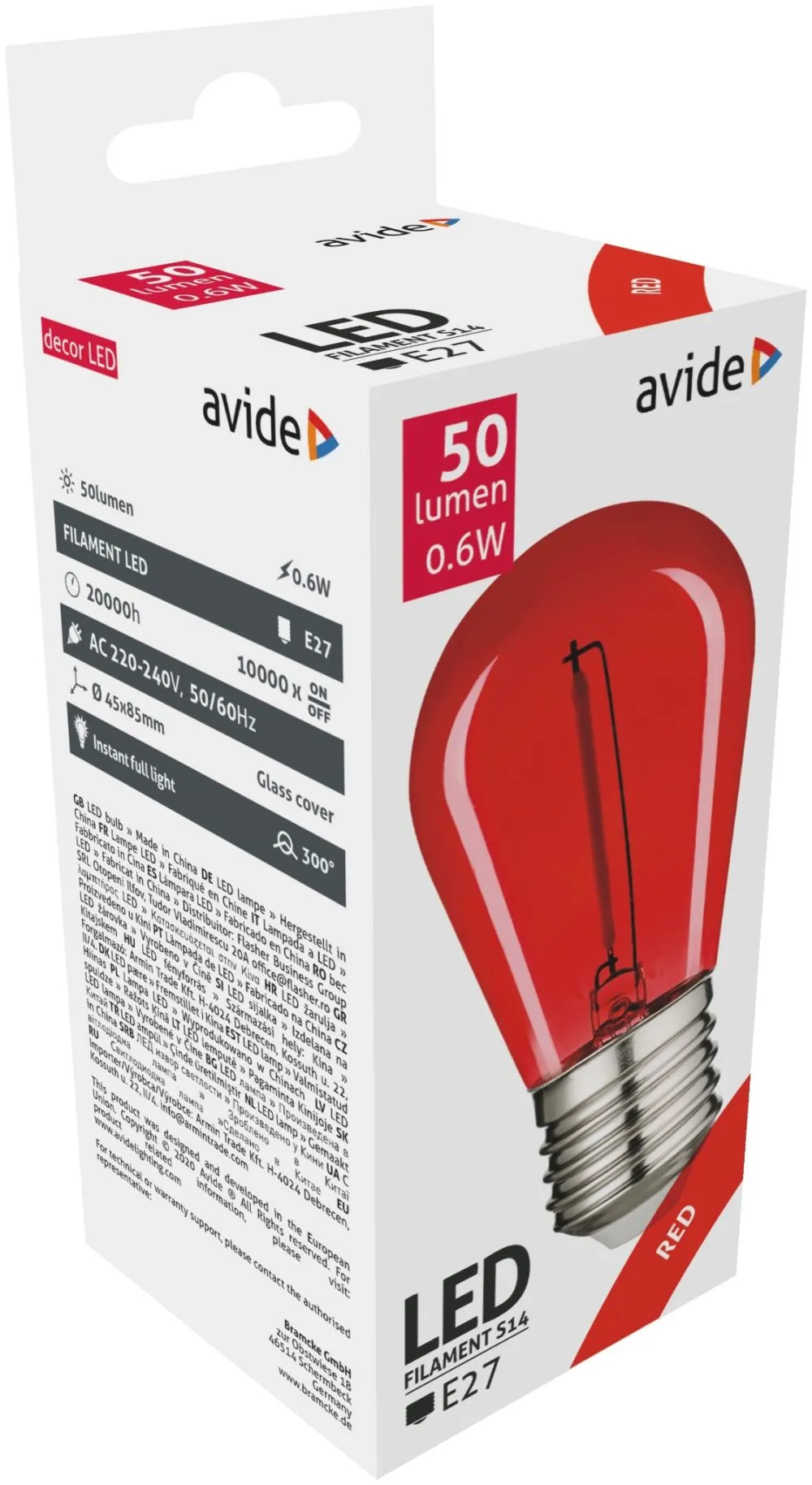 Avide Dekor LED Filament fényforrás 0.6W E27 Piros