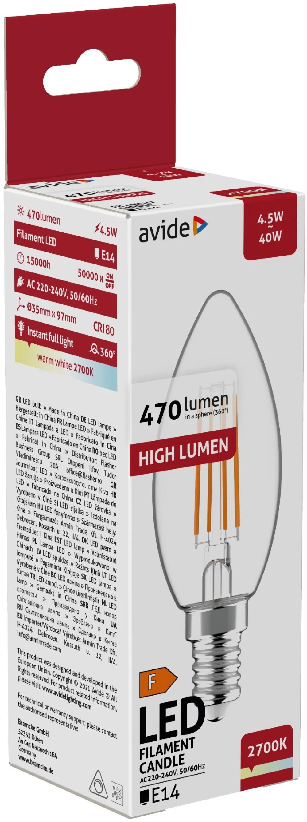 Avide LED Filament Candle 4.5W E14 WW 2700K