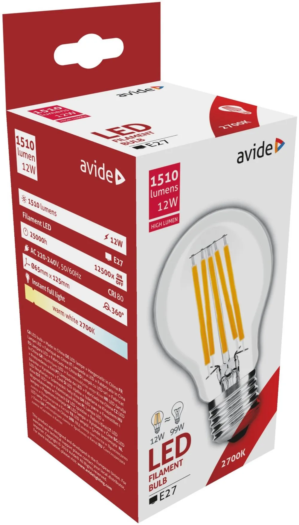 Avide LED Filament Globe 12W E27 A65 WW 2700K High Lumen