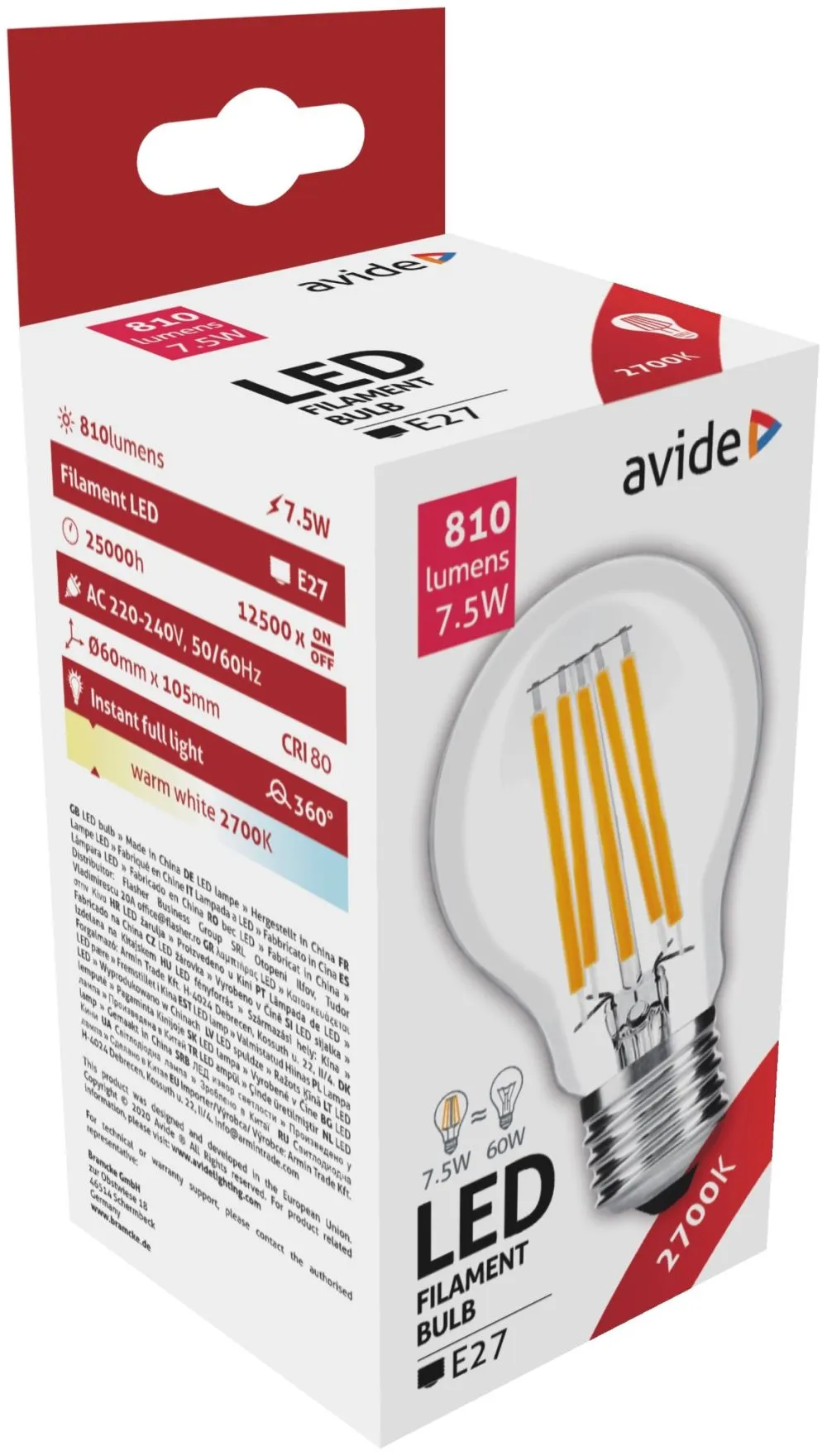 Avide LED Filament Globe 7.5W E27 360° WW 2700K