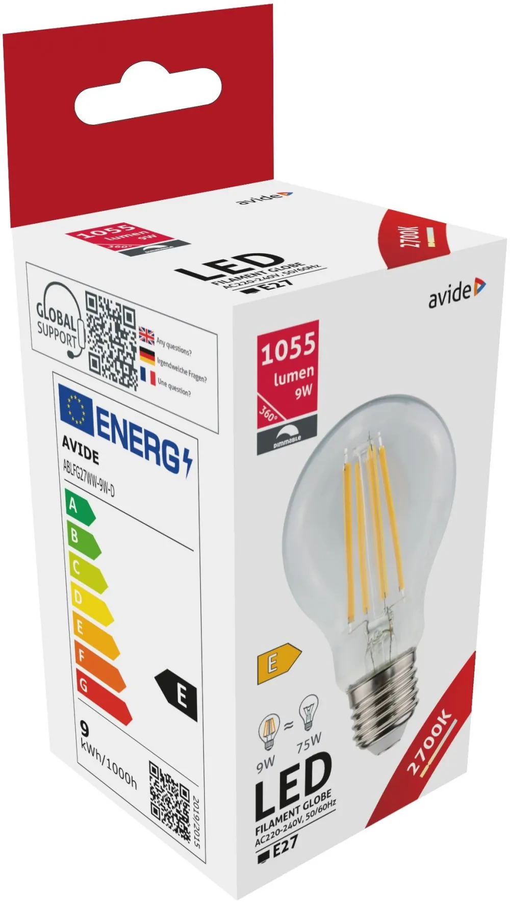 Avide LED Filament Globe 9W Fényerőszabályzós E27 360° WW 2700K