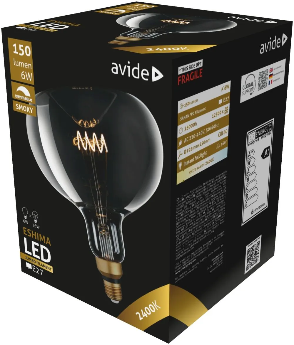 Avide LED Jumbo Filament Eshima 190x255mm Smoky 6W E27 2400K Dimmable