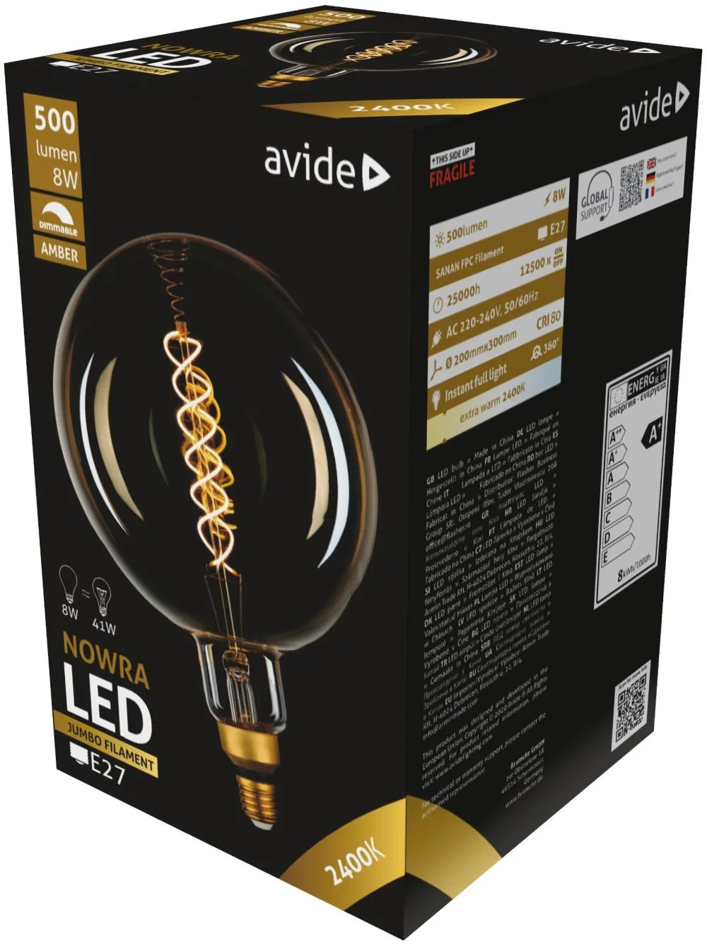 Avide LED Jumbo Filament Nowra 200x300mm Amber 8W E27 2400K Dimmable
