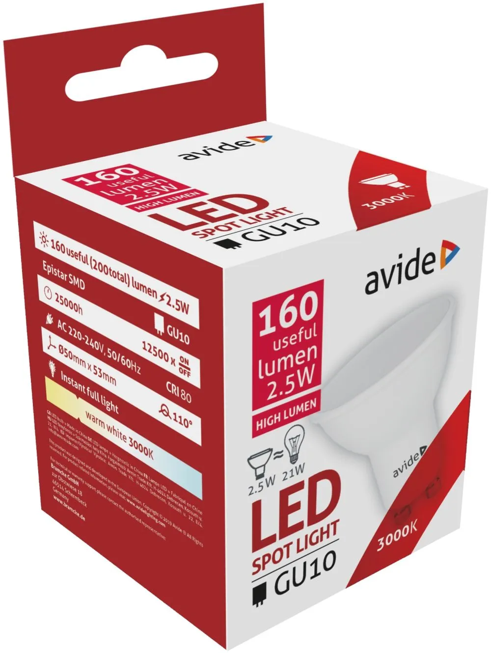 Avide LED Spot Alu+plastic 2.5W GU10 110° WW 3000K