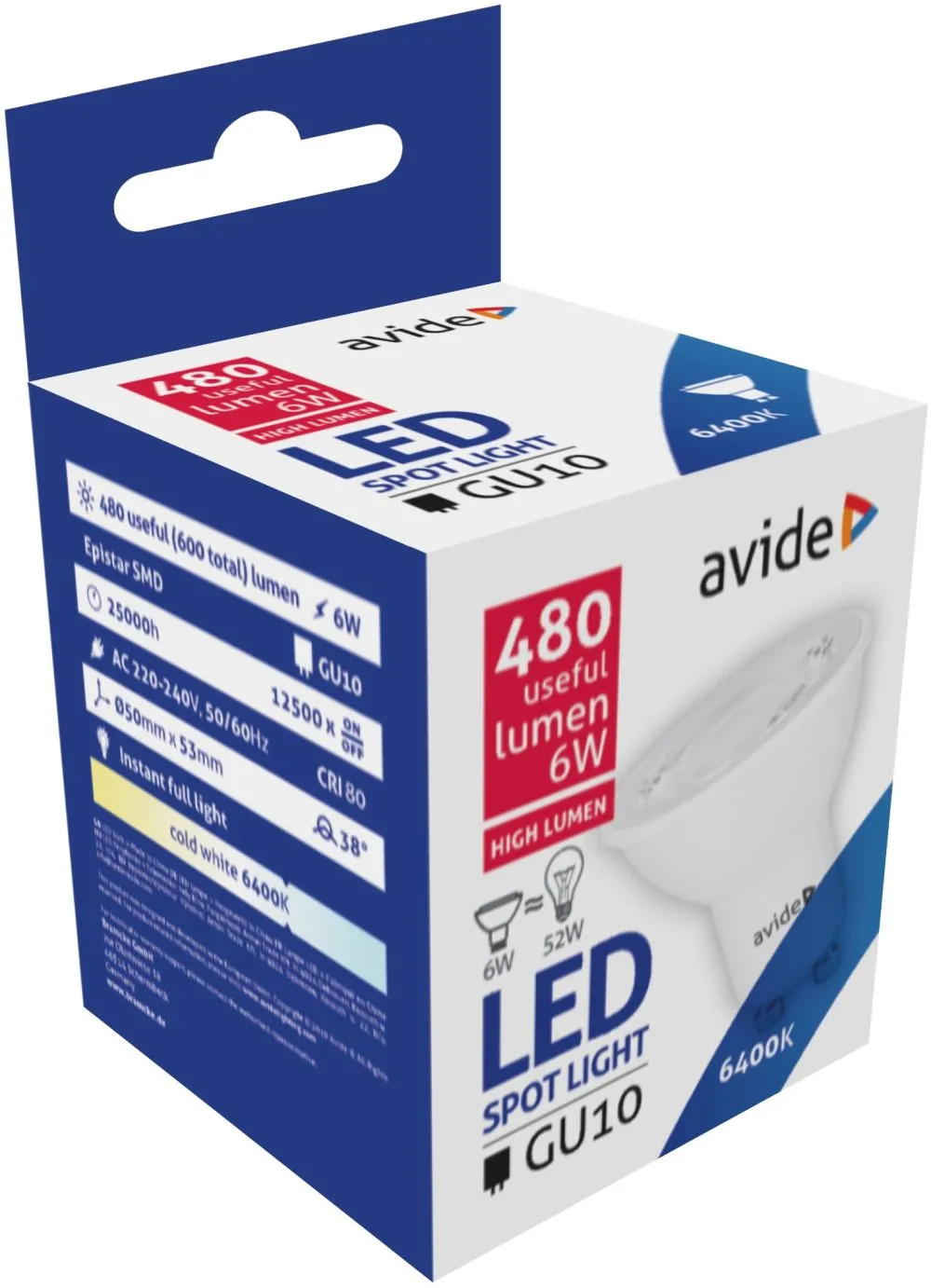 Avide LED Spot Alu+plastic 6W GU10 40° CW 6400K
