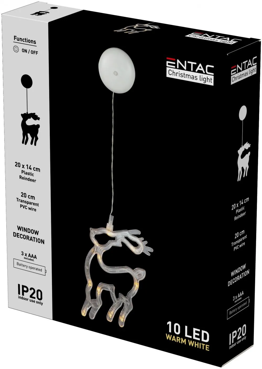 Entac Karácsonyi Ablakdekoráció Rénszarvas 10 LED WW 3xAAA nt.