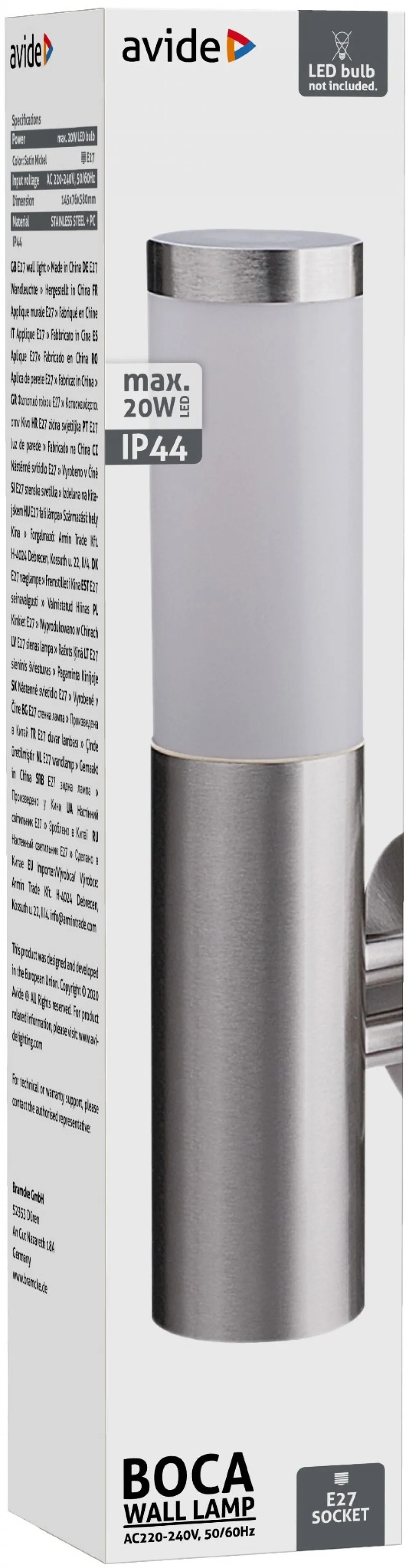 Avide kültéri fali lámpa Boca 1xE27 IP44 Szatén Nikkel