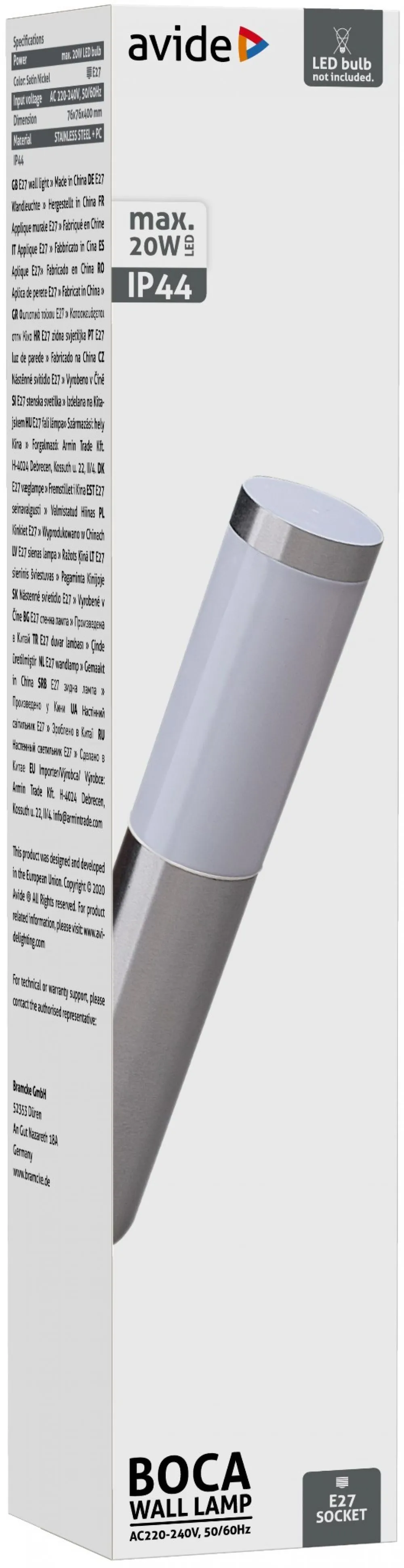 Avide kültéri fali lámpa Boca 1xE27 IP44 Szatén Nikkel
