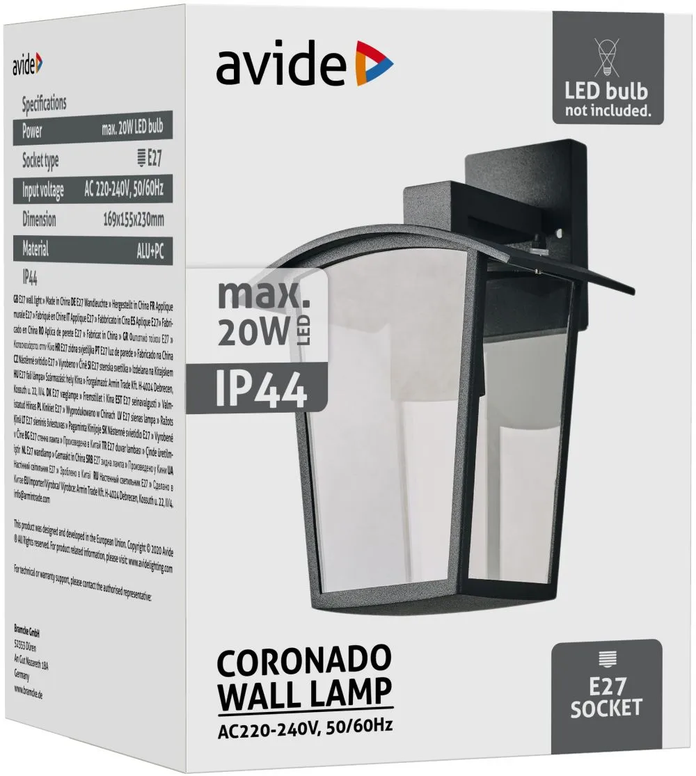 Avide kültéri fali lámpa Coronado 1xE27 IP44 fekete