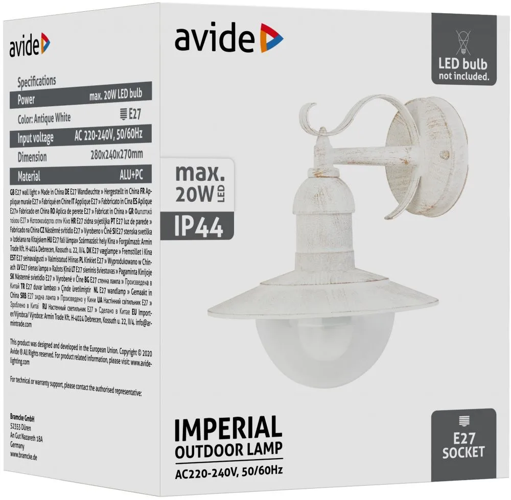 Avide kültéri fali lámpa Imperial 1xE27 IP44 antik fehér