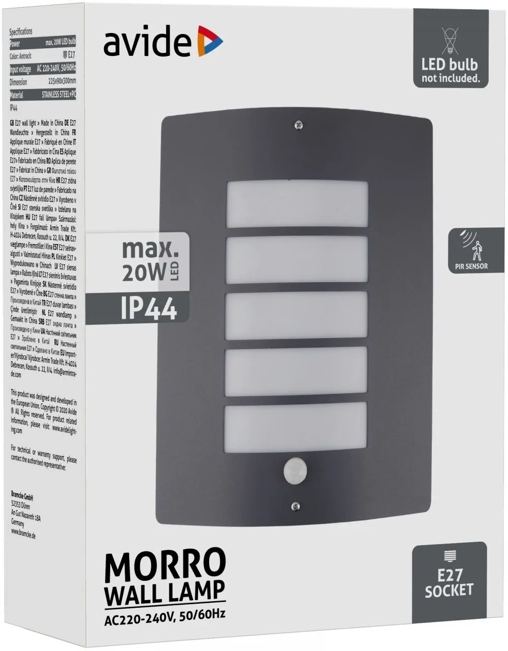 Avide kültéri fali lámpa Morro 1xE27 PIR IP44 Antracit