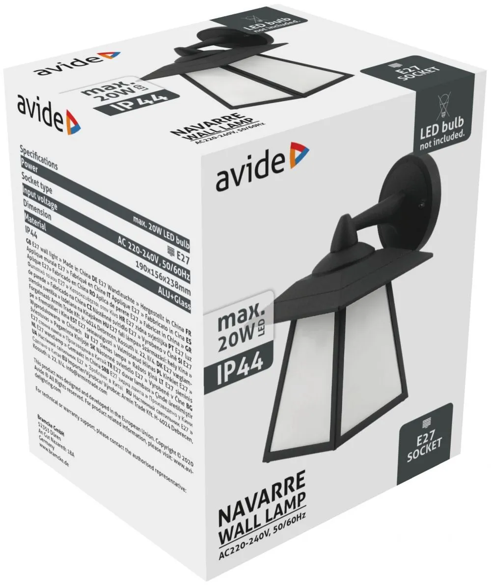 Avide kültéri fali lámpa Navarre 1xE27 IP44 fekete